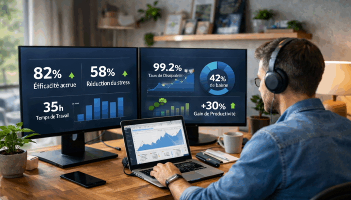 Plusieurs enquêtes menées auprès de développeurs, d’ingénieurs systèmes et de responsables IT montrent une hausse moyenne de la productivité individuelle comprise entre 5 % et 15 % en télétravail partiel. Cette amélioration s’explique notamment par :